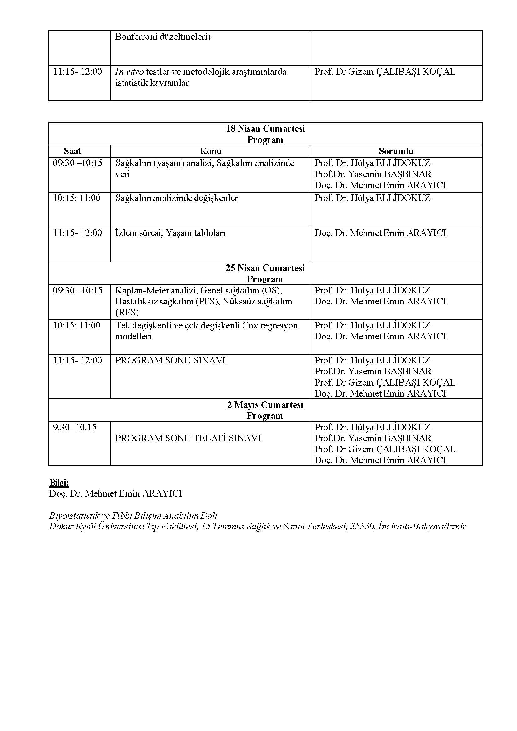Programı; Sağlık alanında eğitim gören veya çalışanlara, biyoistatistik ve sağkalım analizlerine yönelik uygulamalı bilgi ve beceriyi öğrenmek isteyenler başvurabilirler. Uygulamalı kayıtlara düzenli düzenlemeyi sağlamak istenilen koşullar arasındadır.